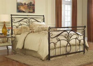 Finish:Marbled Russet, Size:Full The Lucinda Bed is a study in affordable elegance and conveys an atmosphere of drama and romance. The subtly sleighed top rail on the headboard and footboard along with unique castings and intricate scrollwork give this bed an unparalleled presence. The shimmering soft golden highlights on the castings are the perfect accent to the rich finish. This distinct color combination truly makes a compelling statement of understated luxury..../ Fashion Bed Group B11834 Lucinda Bed, Marbled Russet / Bed Frame